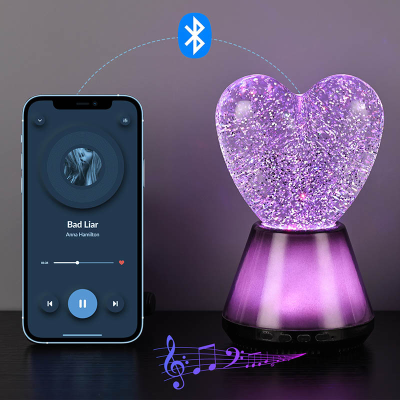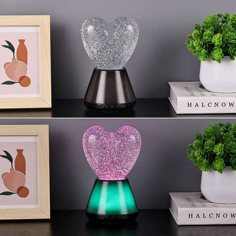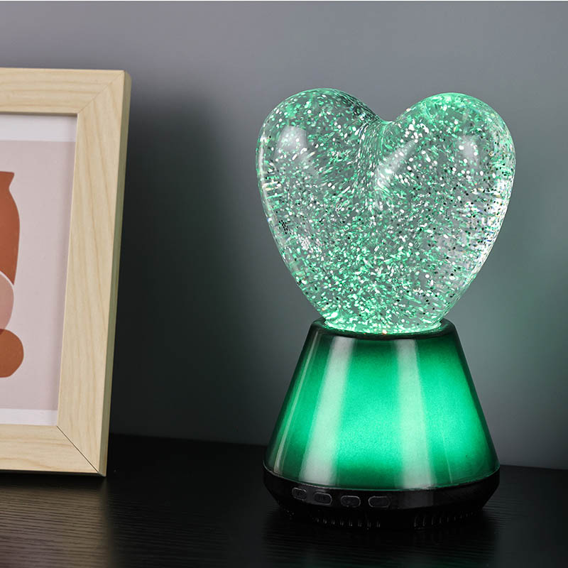 Bagian dalam lampu malam berkilauan yang dipimpin kontrol Bluetooth diisi dengan cairan misterius, di mana payet berkilau yang tak terhitung jumlahnya mengapung. Saat lampu dinyalakan, cairan akan mengalir perlahan di dalam bola kaca berbentuk hati, menciptakan efek seperti mimpi. Payet ini tampak seperti bintang yang tersebar, mengambang dengan lembut di dalam cairan, memberikan perasaan seperti berada di langit berbintang. Baik siang maupun malam, dengan naungan hati dapat menghadirkan kejutan dan kegembiraan bagi anak-anak, memungkinkan mereka melepaskan imajinasi mereka dalam pencahayaan yang indah.