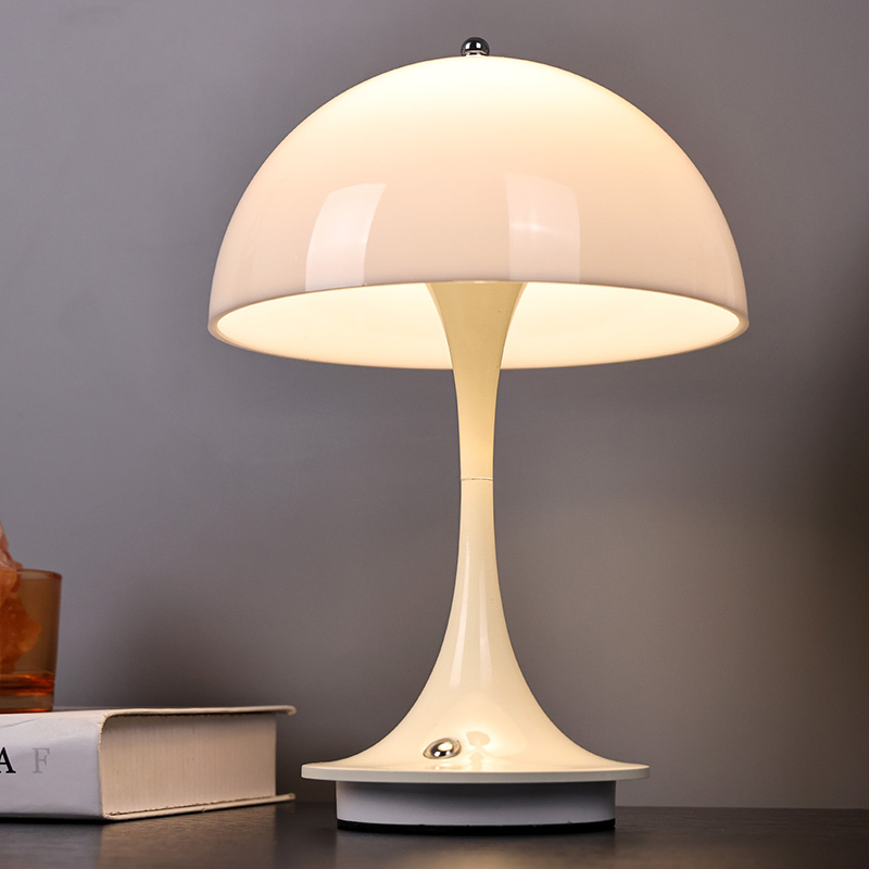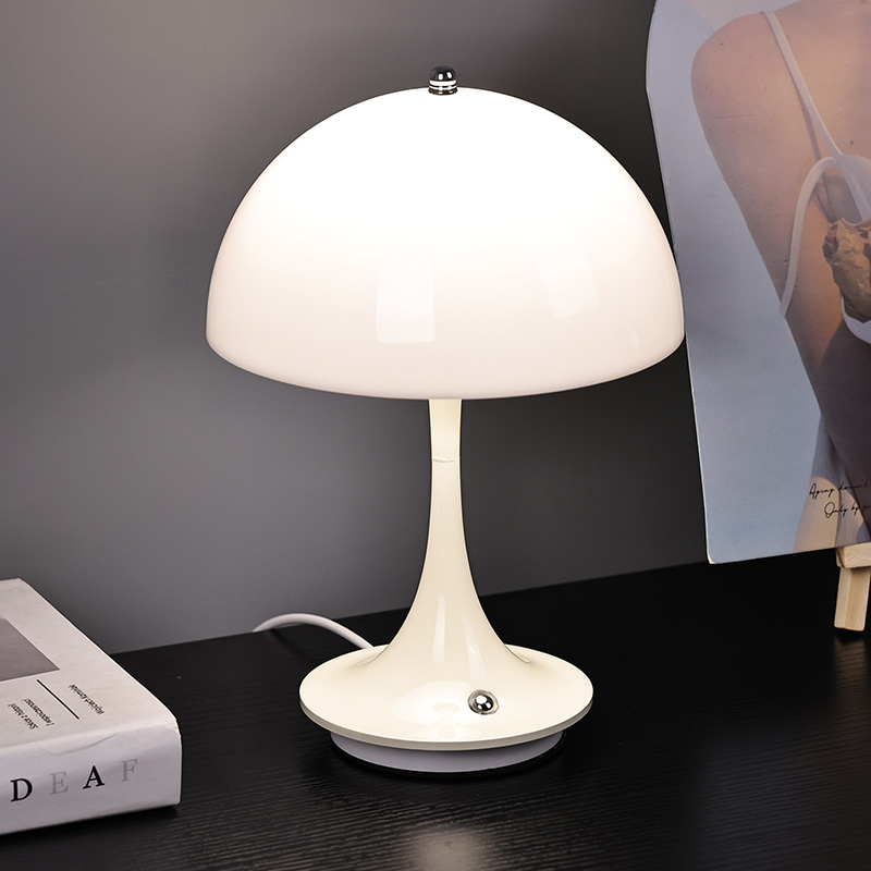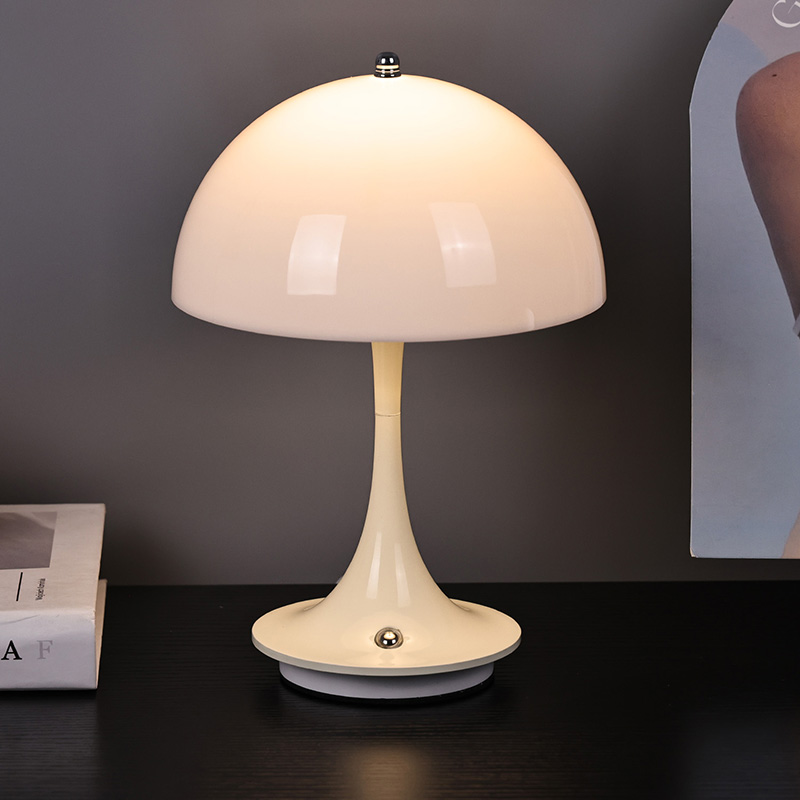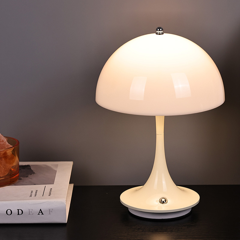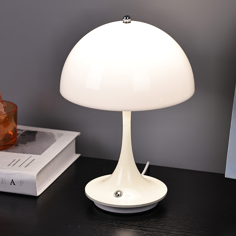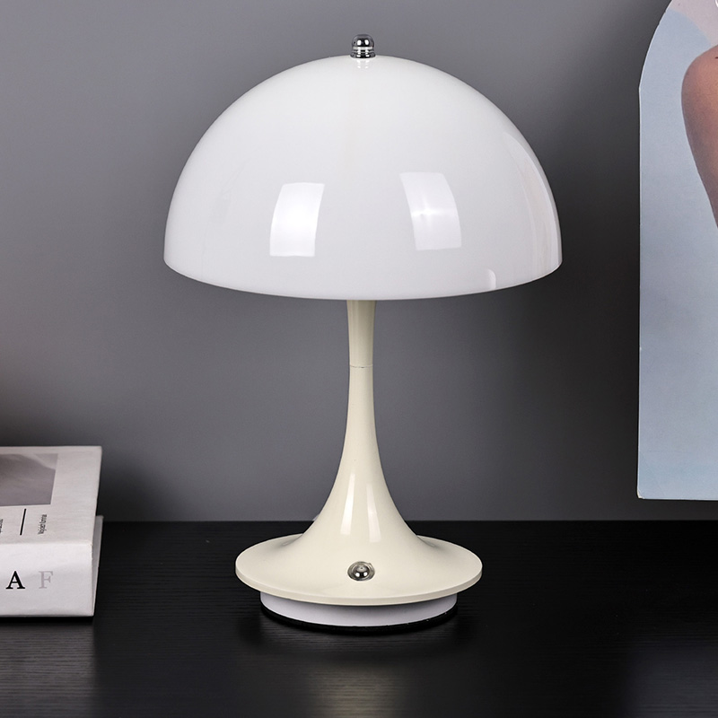 Lampu rumah Led Lucu Dengan Naungan Jamur memiliki alas logam dan tiang lampu logam, serta kap lampu plastik. Permukaan kap lampu dilapisi lilin dan halus, dengan sentuhan yang sangat bagus, menyerupai jamur