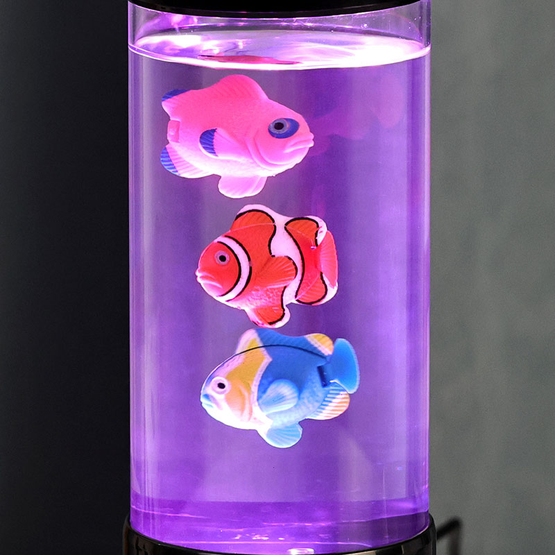 Di dalam tangki transparan, ikan buatan yang tampak hidup meluncur dengan anggun ke atas dan ke bawah selaras dengan aliran gelembung lembut yang muncul dari bawah. Ikan dengan detail indah ini, dirancang dengan warna-warna cerah dan tekstur realistis, tampak berenang secara alami saat terbawa oleh arus lembut yang diciptakan oleh pompa udara internal. Gerakannya menenangkan dan menghipnotis, menciptakan pengalaman visual menenangkan yang membantu mengurangi stres dan meningkatkan relaksasi.