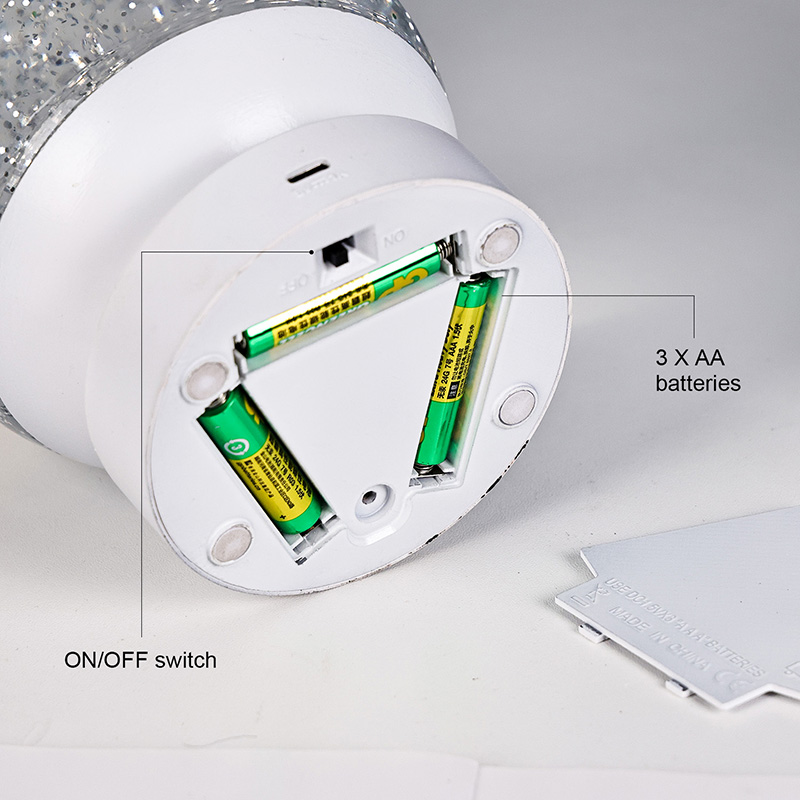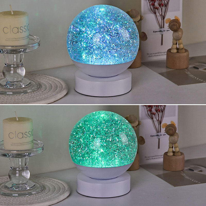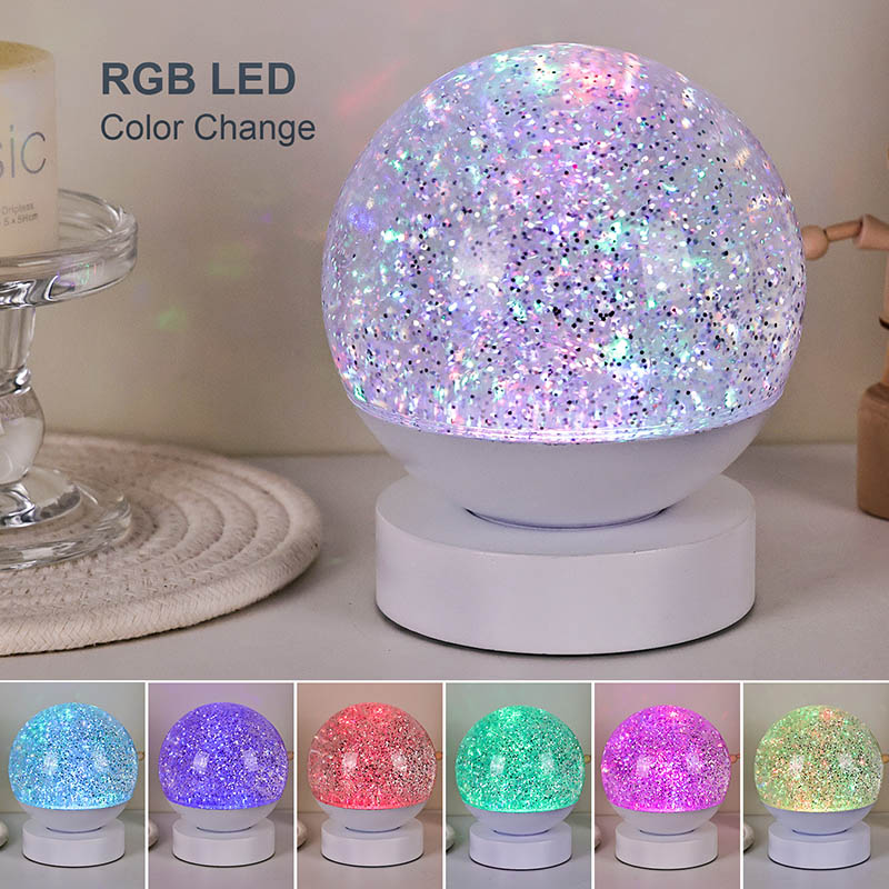 Lampu Dekorasi Glitter RGB Led terbuat dari bahan akrilik berkualitas tinggi, menampilkan bola tembus pandang dengan transmisi cahaya yang sangat baik. Basisnya dibuat dari plastik ABS ramah lingkungan, memastikan stabilitas, daya tahan, dan keamanan tanpa zat beracun. Ini beroperasi dengan tiga baterai AAA internal (baterai dijual terpisah), menghilangkan kebutuhan akan stopkontak dan menawarkan penggunaan yang nyaman. Sempurna untuk ditempatkan di samping tempat tidur, meja, atau di sudut mainan anak. Dengan saklar sentuh sederhana, lampu dapat dinyalakan atau dimatikan dengan mudah, sehingga mudah digunakan bahkan oleh anak-anak untuk mengoperasikannya secara mandiri.