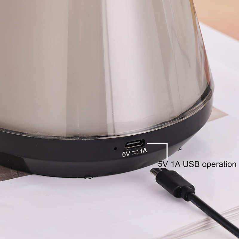 Yang membedakan lampu ini adalah alasnya yang semi transparan dan dapat berubah warna. Terbuat dari plastik bermutu tinggi dengan lapisan buram, bagian dasarnya memiliki sistem LED yang kuat namun hemat energi yang berputar melalui spektrum warna cerah—termasuk biru laut, ungu tua, merah muda koral, hijau aqua, dan putih lembut. Cahaya berdifusi ke atas melalui tangki, menghasilkan cahaya halus yang memantulkan benda bergerak dan cairan, menciptakan pola cahaya dan bayangan yang selalu berubah. Desain semi-transparan memungkinkan warna memancar dengan lembut ke luar, mengubah seluruh lampu menjadi sumber cahaya sekitar 360 derajat yang mengubah suasana ruangan Anda.