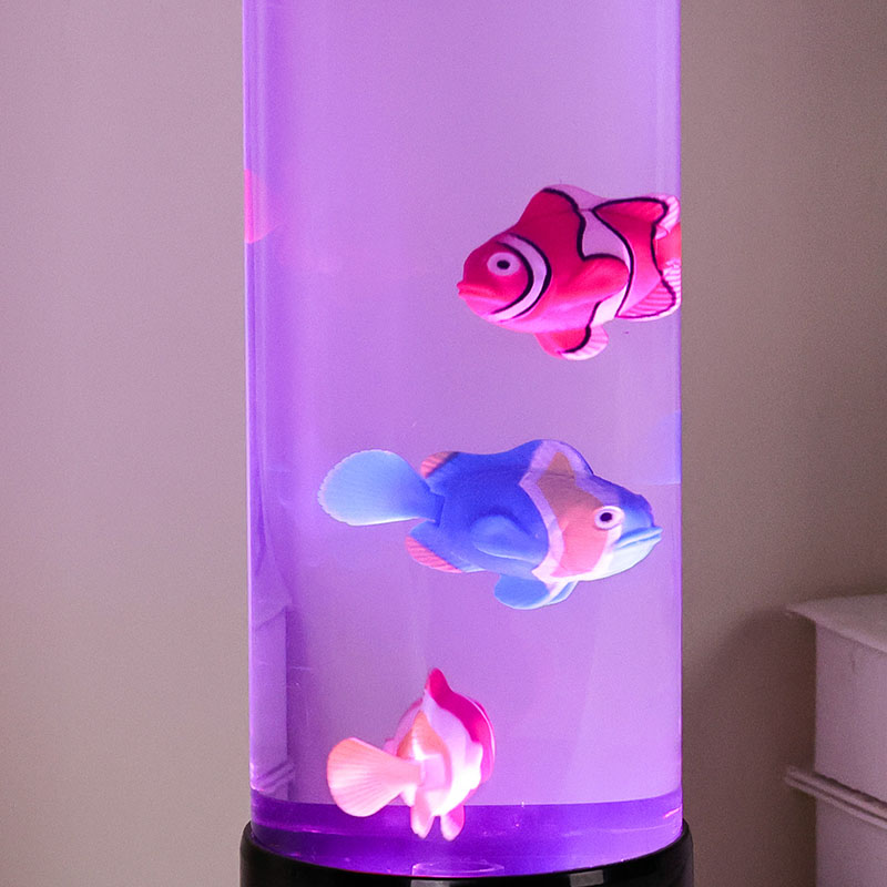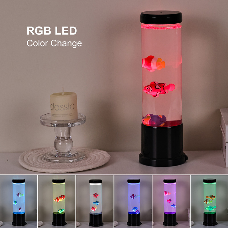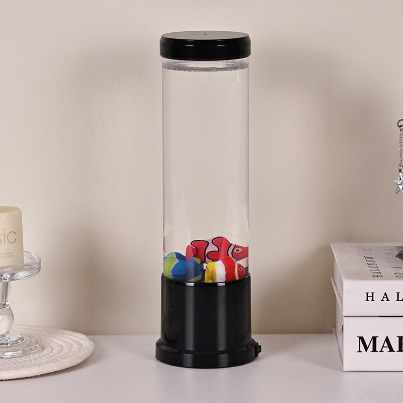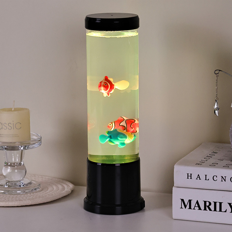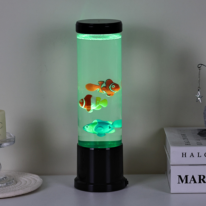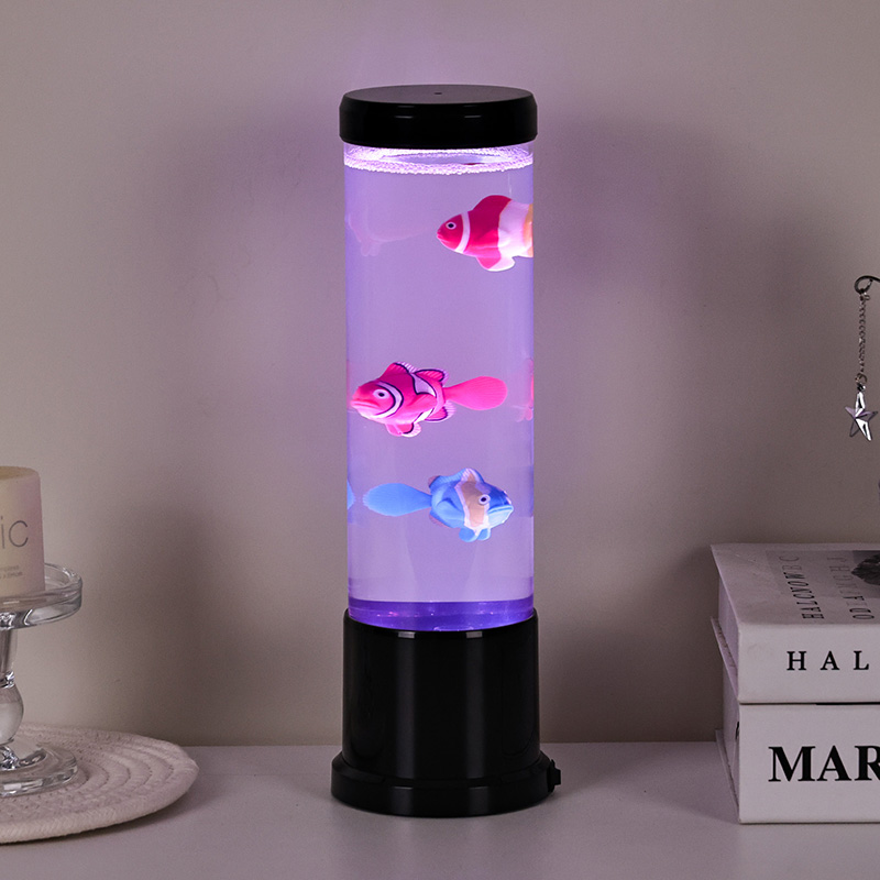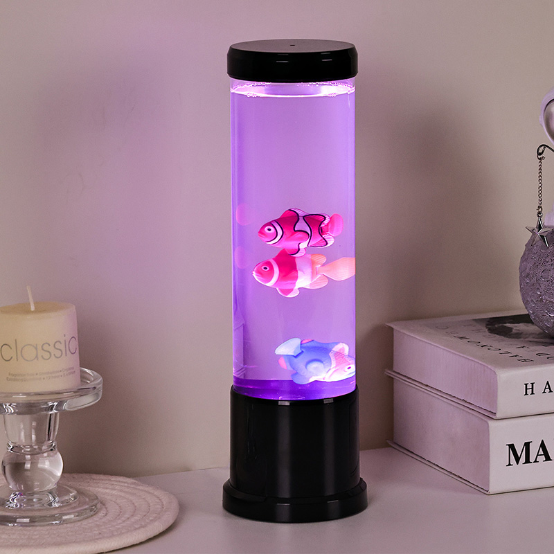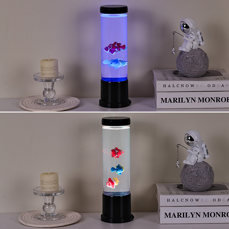 Inti dari lampu ini adalah simulasi tangki ikan asli yang dibuat dengan cermat. Di dalam kolom jernih, Anda akan menemukan sosok ikan mengambang dengan detail indah—seperti ikan badut yang hidup dan spesies tropis lainnya—yang dengan lembut bergerak dan berenang melalui cairan mirip air. Penambahan ubur-ubur bercahaya meningkatkan ilusi magis bawah air, berdenyut lembut dengan cahaya halus. Perpaduan gerakan dan warna menciptakan pemandangan dinamis yang memikat perhatian dan menghadirkan kedamaian di lingkungan Anda.