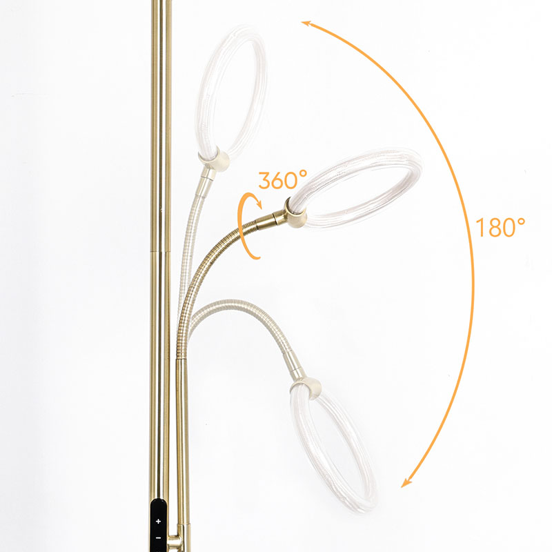Lampu lantai led Emas Mewah untuk ruang tamu dilengkapi dengan teknologi pencahayaan 360 derajat tabung silikon canggih, yang memancarkan cahaya lembut dan seragam, secara efektif menerangi seluruh ruangan. Tabung silikon memiliki fleksibilitas dan daya tahan yang baik, serta dapat menahan berbagai kondisi lingkungan untuk menjamin stabilitas dan keamanan
