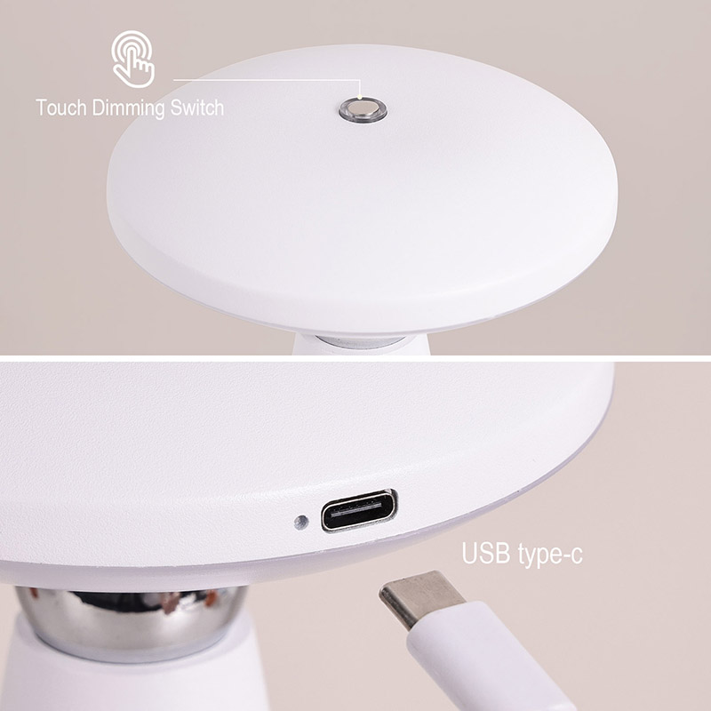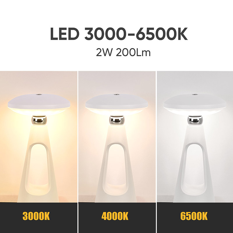 Lampu Meja LED Jamur dengan Baterai Isi Ulang dilengkapi dengan sumber cahaya LED canggih yang memancarkan cahaya lembut hangat dan dapat diatur intensitas cahayanya. Peredupan tanpa batas dapat melindungi mata Anda secara efektif. Melalui operasi sederhana