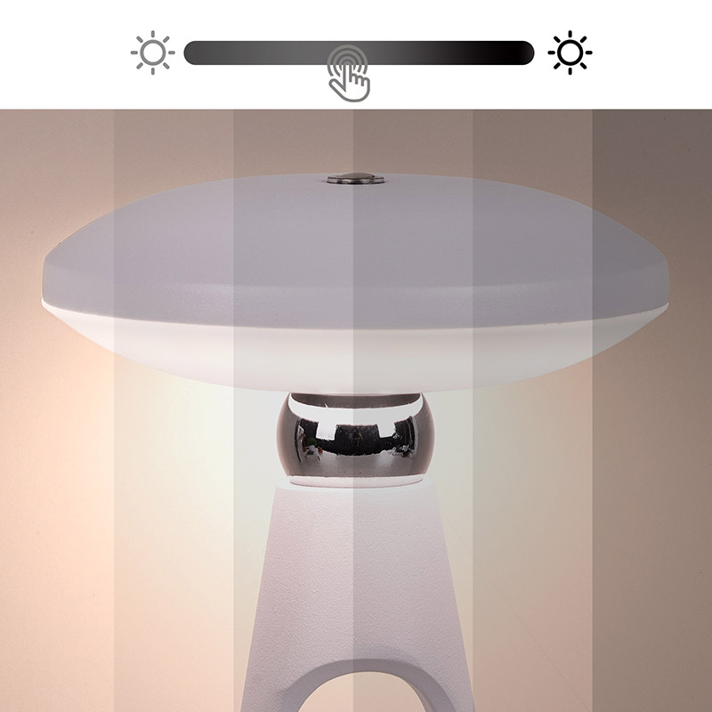 Terdapat tombol sentuh sakelar yang nyaman di bagian atas badan lampu, yang dapat ditekan ringan untuk menyalakan atau mematikan lampu. Menekan lama tombol dapat mengatur intensitas cahaya. Pada saat yang sama, lampu meja ini juga mendukung berbagai metode catu daya, yang dapat dihubungkan ke USB untuk digunakan atau diisi melalui baterai internal.