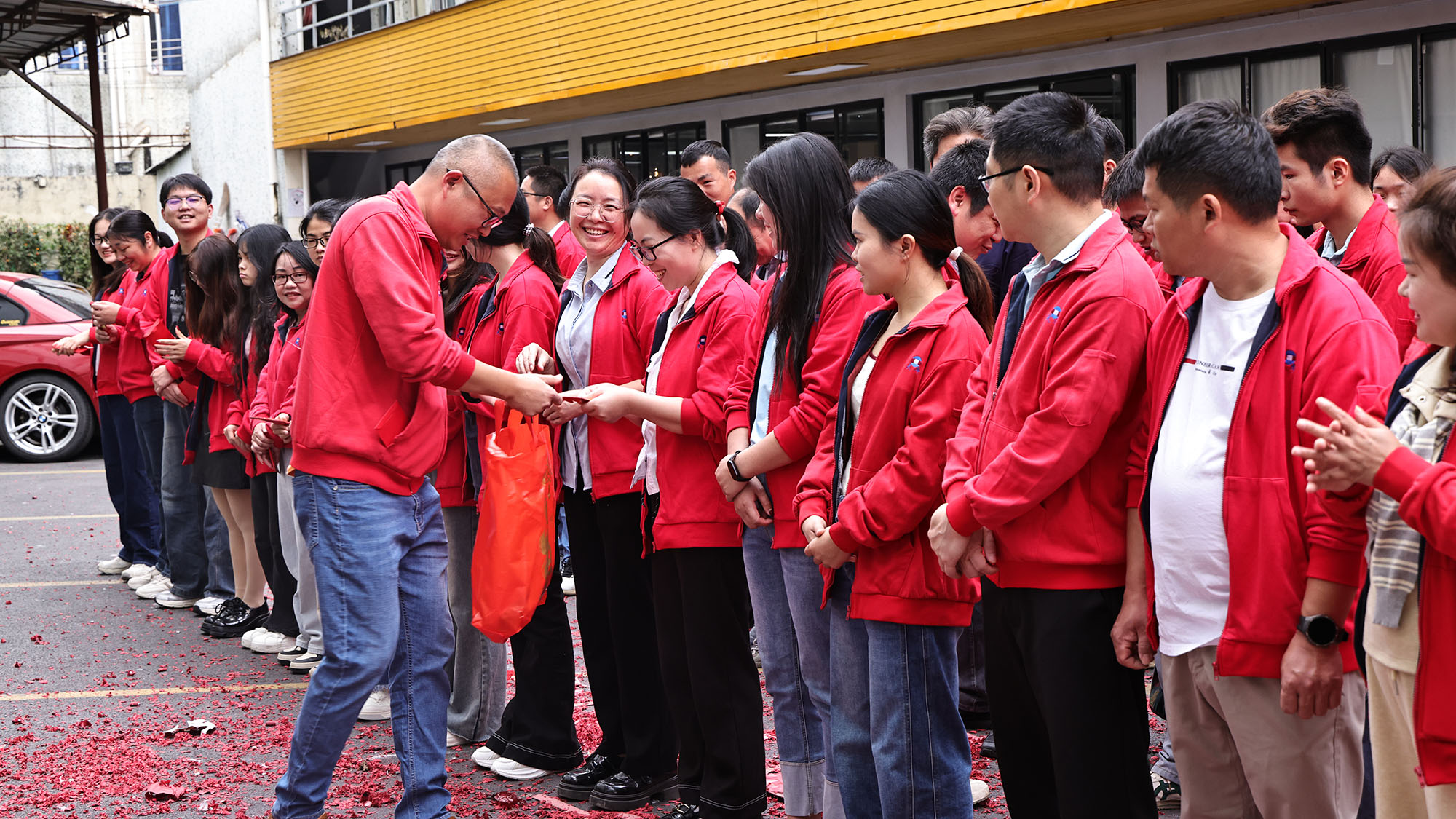 Selanjutnya, segmen seru pendistribusian "Kick-off Red Packet" mendorong suasana di lokasi hingga mencapai klimaks. Manajemen perusahaan secara pribadi membagikan amplop merah keberuntungan (Li Shi) kepada setiap karyawan. Paket merah yang berat ini tidak hanya membawa kepedulian dan berkah perusahaan bagi para stafnya tetapi juga harapan indah untuk kelancaran kerja dan kehidupan bahagia semua orang di tahun baru. Karyawan yang menerima paket merah berseri-seri dengan senyum bahagia, saling mengucapkan salam "Awal yang Sejahtera." Tawa dan kegembiraan memenuhi udara, memadukan rasa kuat Tahun Baru dengan kehangatan manusia, menghangatkan hati setiap orang.