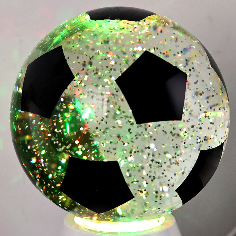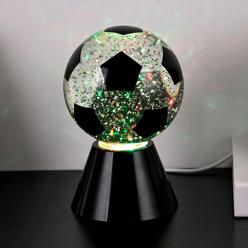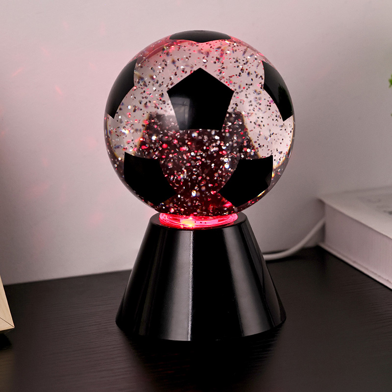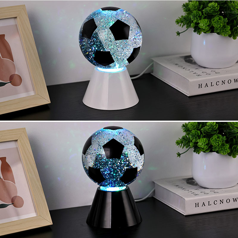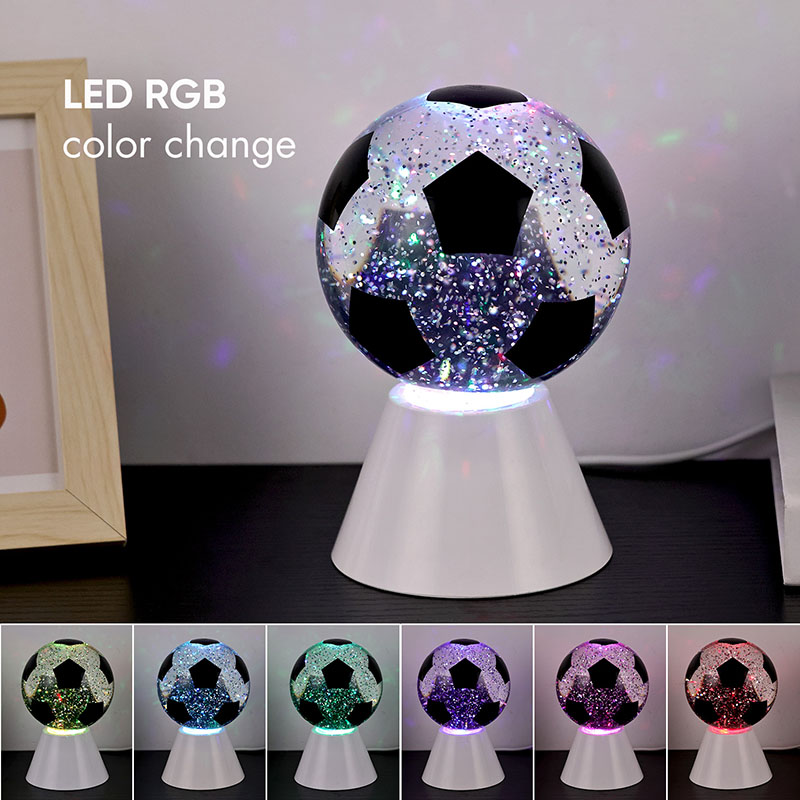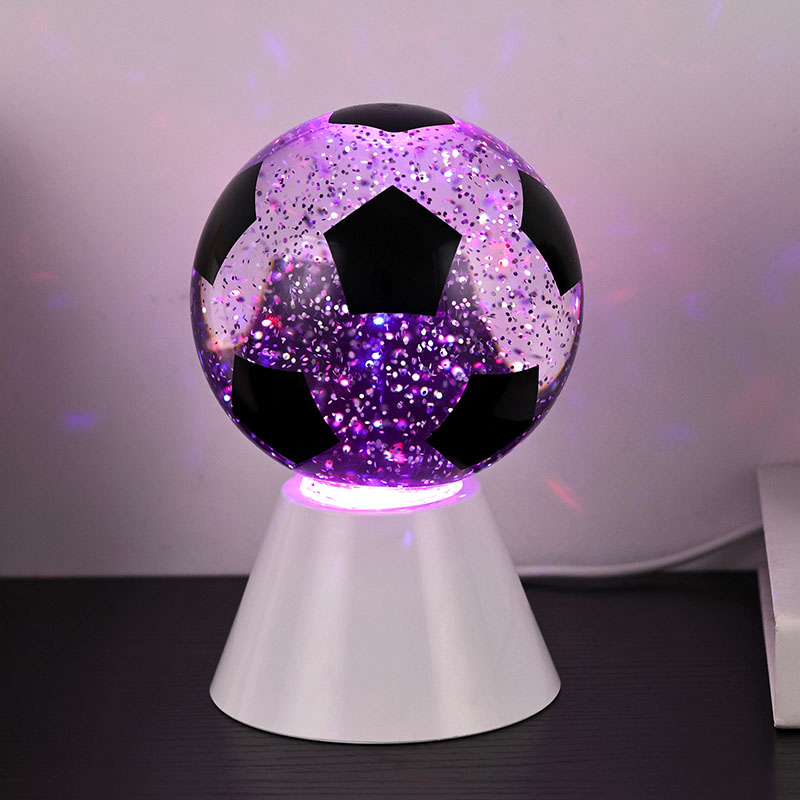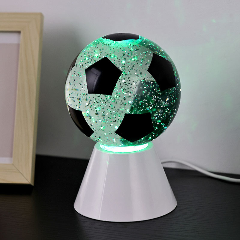 Putih + warna LED berubahLampu hadiah berbentuk bola terdiri dari kaca bagian atas dan alas plastik. Permukaan kaca dicetak dengan pola sepak bola, yang dapat dicetak dalam berbagai warna. Fitur utama Night Light with Football Shade adalah terdapat cairan di dalam bola yang berisi payet. Setelah sakelar dihidupkan, motor kecil yang terpasang di dalamnya mulai bekerja, dan cairan di dalam kaca akan bergerak tidak teratur. Pada saat yang sama, cahaya bawah Night Light dengan Football Shade mulai berubah, yang sangat indah. Lampu Malam dengan Naungan Sepak Bola terutama digunakan untuk dekorasi interior, di kamar, ruang tamu, kamar hotel, dan tempat lainnya, Produk ini juga dilengkapi dengan pengisi daya USB dan dapat menggunakan baterai 3AAA.
