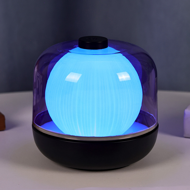 Di dalam bolanya, teknologi LED RGB yang canggih memungkinkan transisi warna yang mulus dan mode pencahayaan yang dinamis, dengan mudah beralih dari warna biru dan ungu yang menenangkan ke oranye dan merah yang hangat untuk menyesuaikan suasana hati atau suasana Anda.