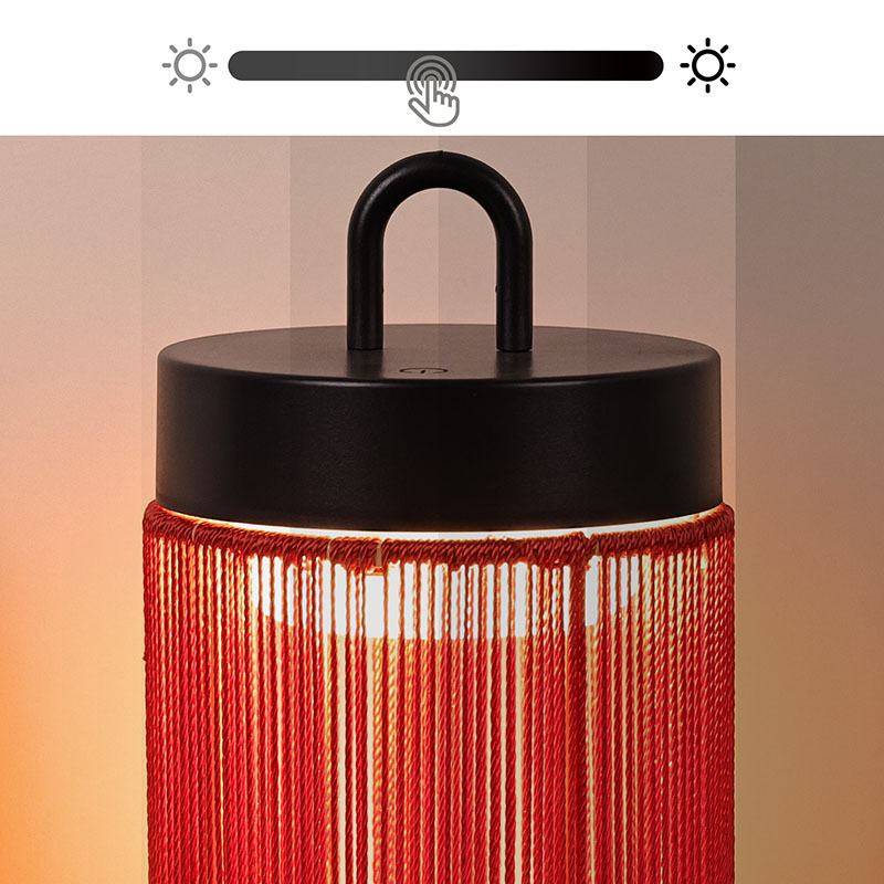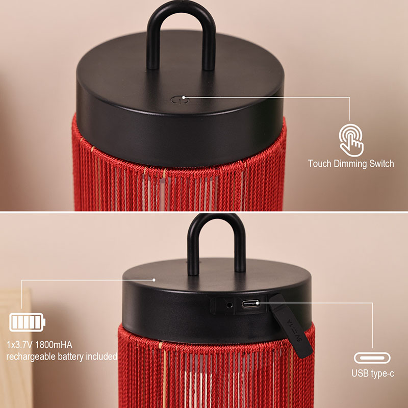 Desain keseluruhan: Berbentuk silinder, dengan garis-garis sederhana dan halus, Lampu meja led khusus berbahan nilon memiliki gaya minimalis modern. Lampu meja led khusus dengan bentuk nilon membuatnya lebih stabil saat diletakkan dan juga nyaman untuk pergerakan genggam. Pencocokan warna: Bagian utamanya berwarna merah cerah, memberi orang pengalaman visual yang hangat dan hidup, yang mudah